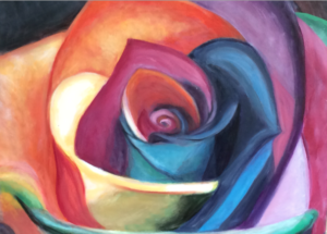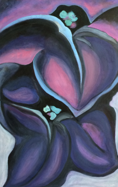 Connie learned our unique methodology for mixing hues and creating values for her first abstract painting. From there she studied the work the works of Monet and Renoir. With Connie’s love of nature and the ephemeral style she developed, it was clear that Georgia O’Keefe would offer Connie Inspiration and added guidance on her journey to develop an her own vocabulary and style. The paintings below will chart Connie’s course from beginner to professional.