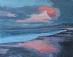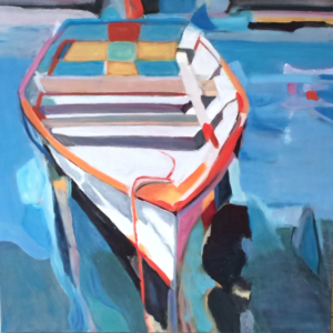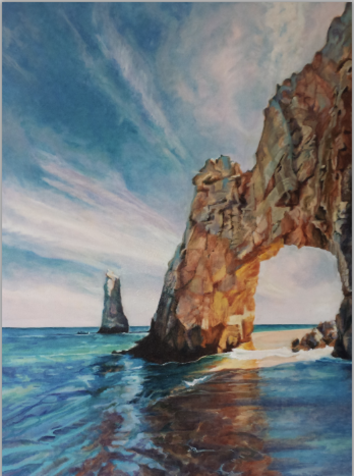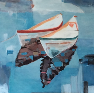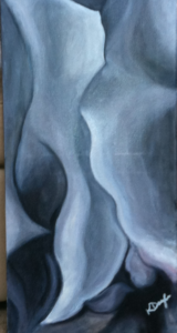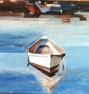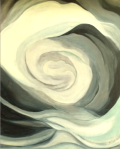 Realism is seductive but being a Xerox machine isn’t what we do at Artists in Bloom. Karen found her theme in water, a spiritual substance that is ephemeral and transforming. Karen’s work invites the viewer to engage in conversation. I know you will find her work as sublime as we do at Artists in Bloom Ministry….Virginia Cascarilla