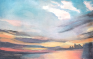 The process of painting abstract or expressionist is like navigating on the high seas or out in space until some solid forms arrive. Maybe its trying to find clarity… I could call all my abstracts “A glimpse of sunshine trying to get through.”